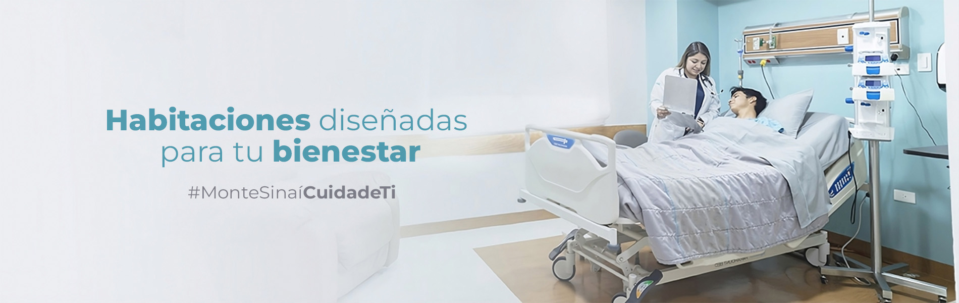 EL HOSPITAL MONTE SINAÍ PONE A DISPOSICIÓN DE SUS PACIENTES HABITACIONES TOTALMENTE EQUIPADAS, CON EL OBJETIVO DE PROPORCIONAR CUIDADOS BÁSICOS Y ESPECIALIZADOS EN UN AMBIENTE CONFORTABLE, CON ATENCIÓN MÉDICA Y DE ENFERMERÍA LAS 24 HORAS DEL DÍA.